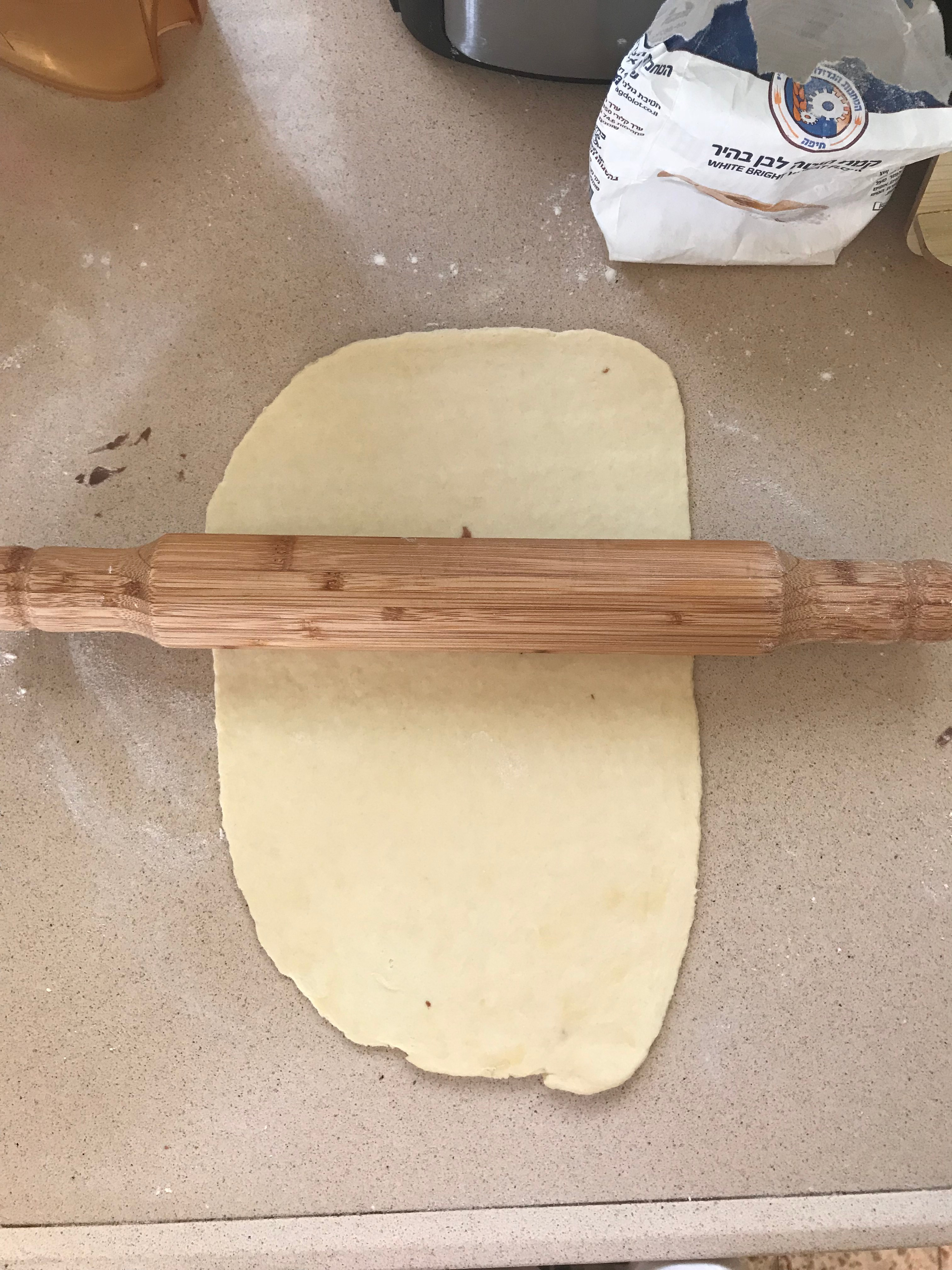 רידוד בצק של עוגיות מגולגלות עם נוטלה